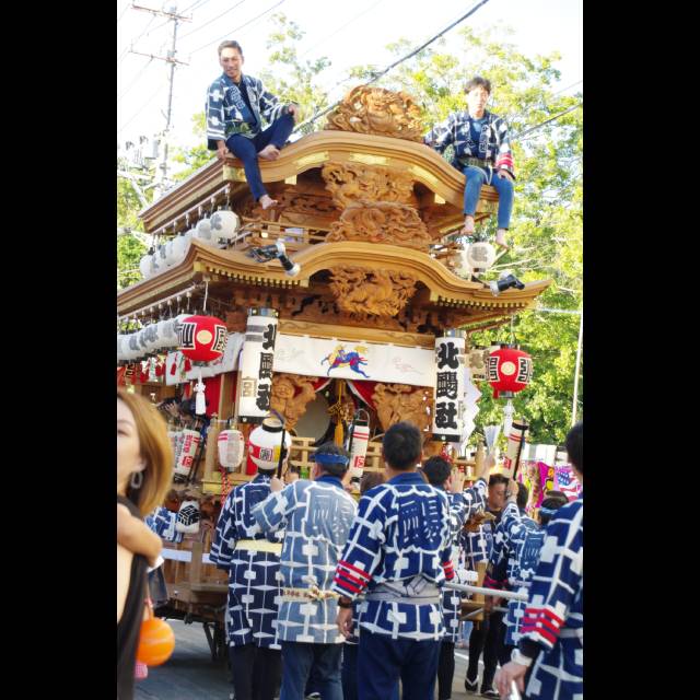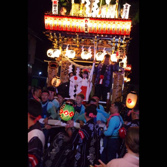 友達と肩を組み合って曳き廻した屋台、