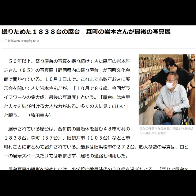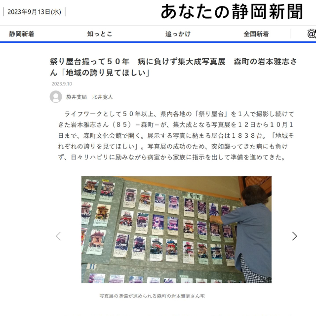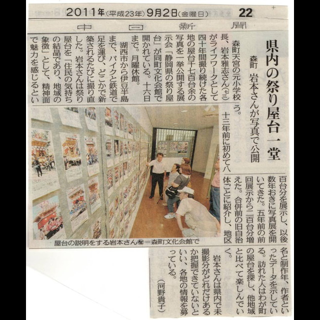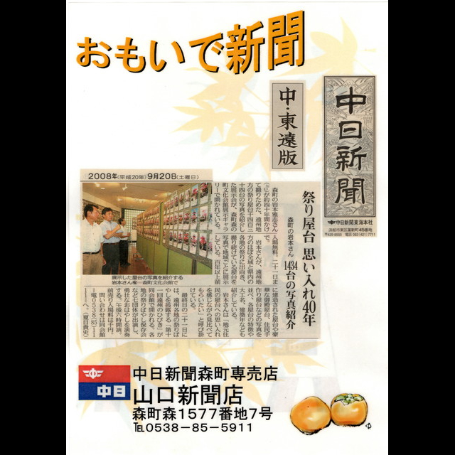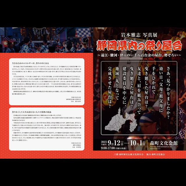 平成20年以降 3~5年ごとに「静岡県の祭り屋台」写真展を森町文化会館で開催。